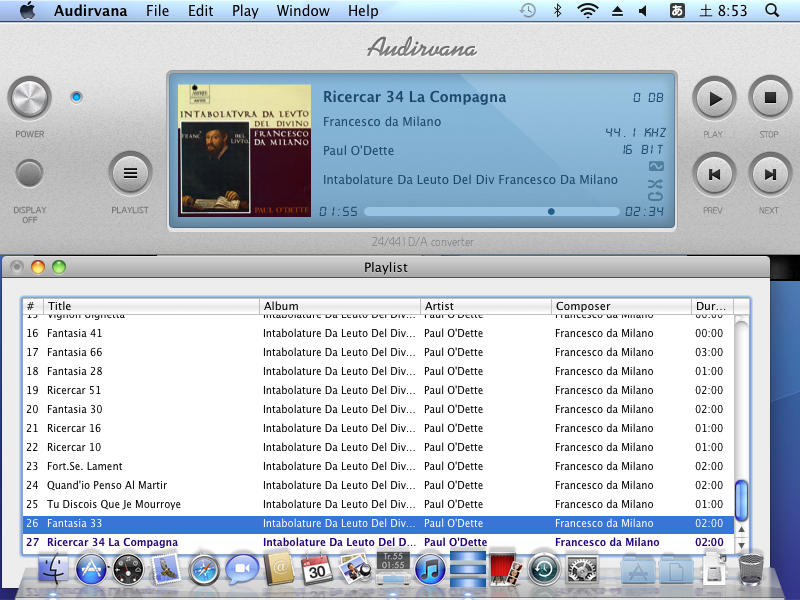 表示品質は非常に良く、解像度アップで表示エリアが拡大し、メインで使用しているAudirvanaは以前は横のドット数が足らず、画面から表示がはみ出していたのですが、下のように普通に表示できるようになりました。